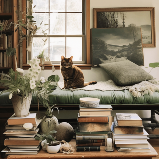 Witch reading amid snakes and other monsters - newsletter background - midjourney