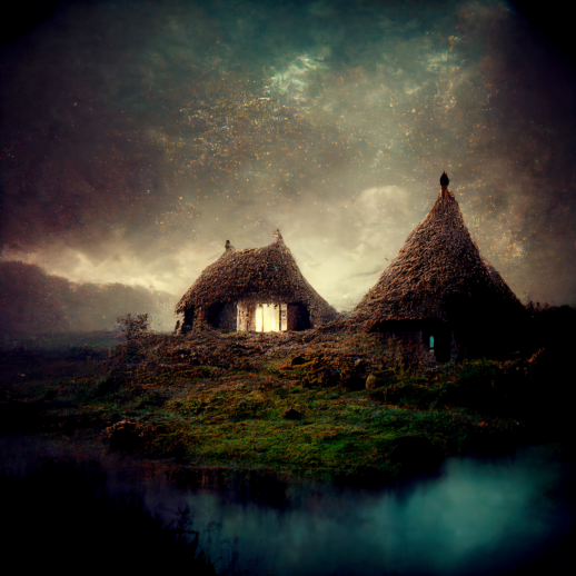 Midjourney Halloween Samhain lonlely house lake clouds dusk
