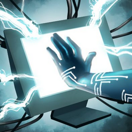 Hand causing sparks on screen cybermagic
